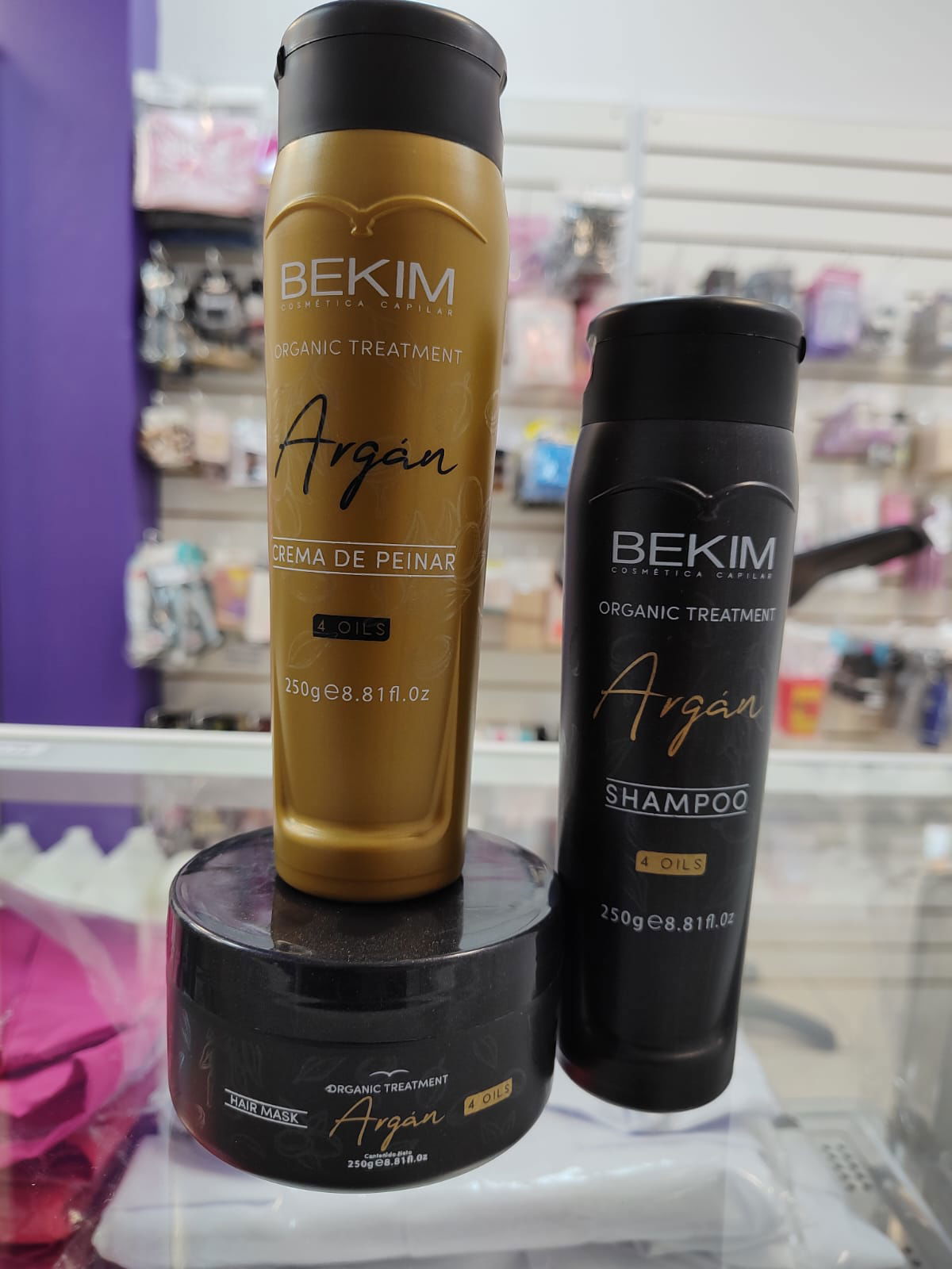 INCLUYE UN SHAMPOO DE 250 CC + 1 MASCARA DE ARGAN DE 250 CC + 1 CREMA DE PEINAR DE 250GRMS