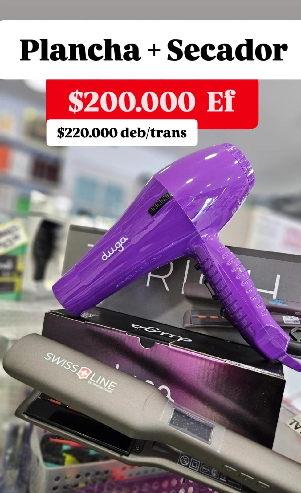 Secador Duga + PLanchita Plancha SwissLine Zurich planchita Recubrimiento de placa de nano titanium Placa de calentamiento rapido hasta 250° LED infrarrojo con tecnologia de liberacion de iones Pantalla LCD con indicador de temperatura Temperatura ajustable Modo de bloqueo para facilitar almacenamiento Cable giratorio 360°